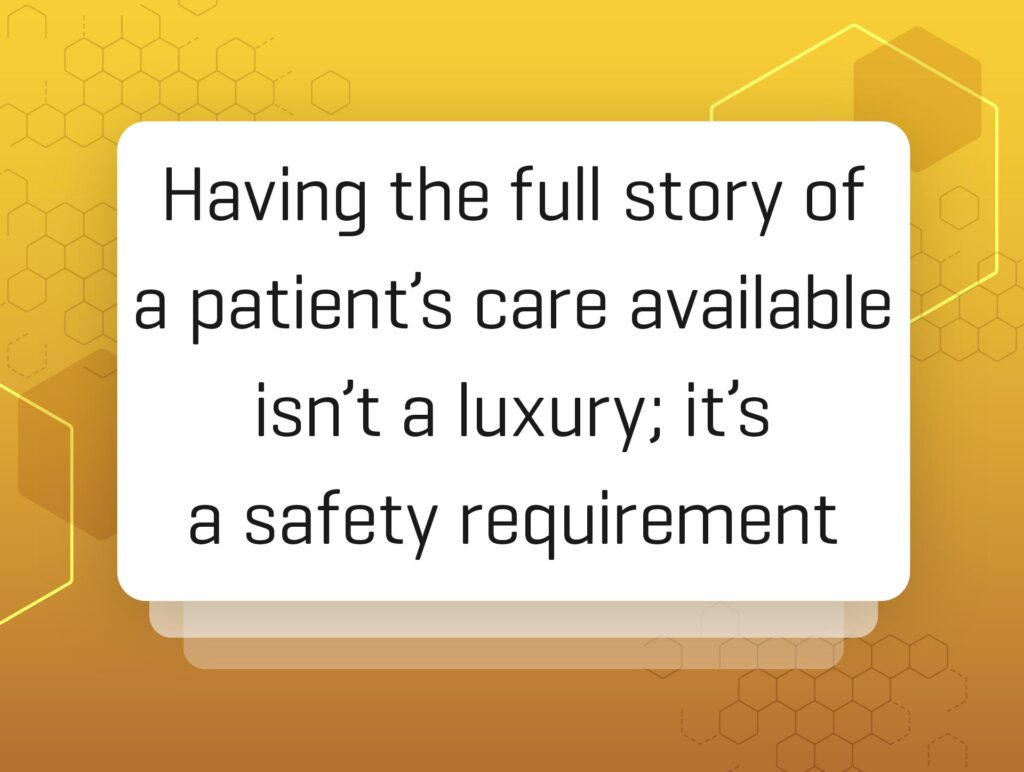 The reality (and from my personal experience) is that with the current, severe backlogs along with stretched resources, few – if any – will have time to go through this rigmarole. And, in my humble opinion, nor should they have to. Access to the right patient information, at the right time, should be a given. After all, context is everything when caring for a patient – especially for those with long-term, complex, chronic cases involving multiple morbidities. Having the full story of a patient’s care available to those that need it, when they need it, isn’t a luxury; it’s a safety requirement.