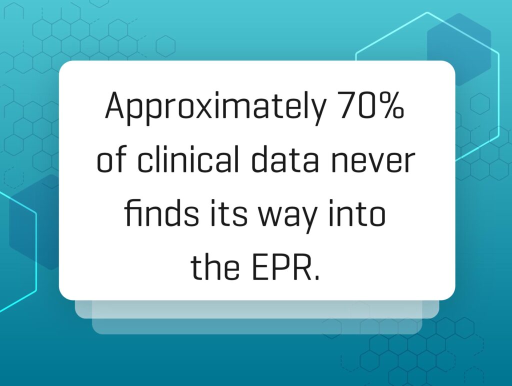 Having said that, and to re-iterate on my previous post, EPRs are only part of the story. Why? Simply because they often store a fraction of a patient’s data – approximately 70% of clinical data never finds its way into the EPR. This data ranges from historical patient notes and scanned documents, through to radiology images, pathology reports and more – all residing elsewhere. Much of this data is trapped in legacy systems that do not support interoperability. Furthermore, full migrations of this data to the new EPR are deemed too complex, time-consuming, and/or expensive. The result… this patient data tends to stay where it is. And when it stays locked away, it increases the risk that decisions are being made without the full clinical context.